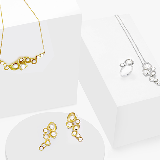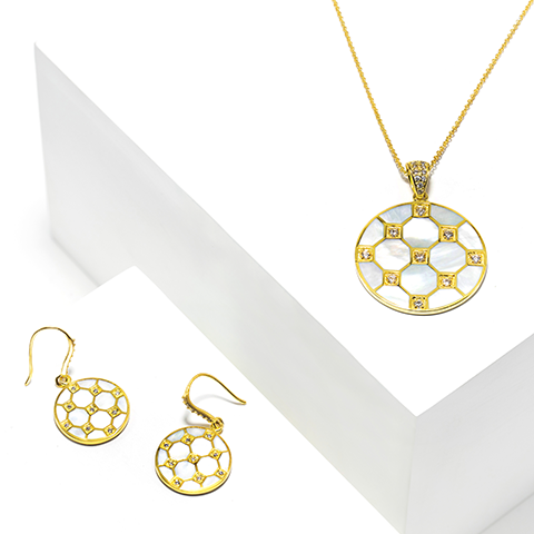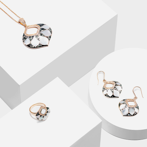 White South Sea mother of pearl inlay handmade with 18k rose gold plating over sterling silver jewelry